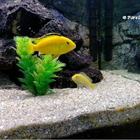 Labidochromis Yellow man met jonkie